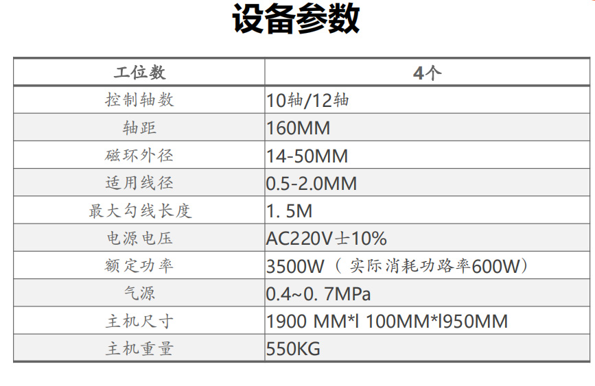 3.快速換型:旋轉(zhuǎn)盤根據(jù)磁環(huán)任意調(diào)節(jié),銅線規(guī)格任意更換,伺服電機數(shù)量多,機械位置手動調(diào)整少